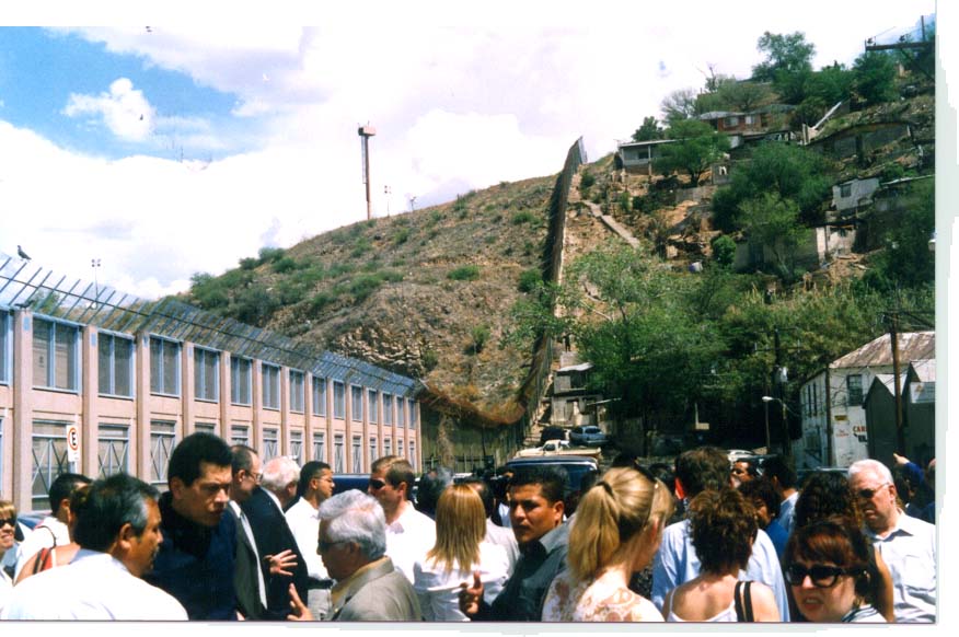 Het ijzeren scherm Eind maart 2004 bezocht ik als lid van de Commissie Migratie van de Raad van Europa het conflictrijke grensgebied tussen Mexico en de Verenigde Staten. Hieronder een impressie van dit bezoek. Het vliegveld van Hermosillo is overzichtelijk klein. Schiphol vijftig jaar geleden. Buiten stopt het wagentje met de koffers. Ze worden op de enige loopband gezet die binnen, aan de andere kant van de ruit, meteen weer stopt. De waakzaamheid van de douane dateert nog uit het pre-terroristische tijdperk. Vijf mensen wachten in het aankomsthalletje, waarvan één op mij. Hermosillo telt volgens mijn reisgids 500.000 inwoners maar die zie je er niet aan af. De hoofdstad van de Noord-Mexicaanse deelstaat Sonora strekt zich in een rasterpatroon met uitsluitend laagbouw behaaglijk uit in een laagvlakte, waar het zomers bloedheet moet zijn. Maar nu, eind maart, is het er lekker. De stad heb je in een dag wel gezien. Het drukke centrum ligt om de overdekte markt, die overladen is met kleurrijk fruit, hoog opgetaste groenten en ruige porties vlees. Aan lange tafels eten de Mexicanen bij de vier uitgangen van het gebouw hun overbekende taco’s en tortilla’s. Even buiten het centrum liggen kathedraal en gouverneurspaleis aan een groen plein. De kathedraal, opgesmukt als een suikertaart, is van binnen verrassend klein met frisse fresco's in de koepel. Het wereldse paleis heeft een weelderig begroeid binnenhof met moderne muurschilderingen die leven, lust en lijden van Sonora verbeelden. Verder telt de stad twee musea. Op de campus van de universiteit (20.000 studenten!) is een klein archeologisch museum, met het gebruikelijke werk: schalen, potten, sieraden, gereedschappen, werktuigen en twee mummies. In de vale vitrine van het pompeuze gebouw hangt een allegaartje aan affiches, o.a van de Olympische Spelen in München in 1972 en anticommunistische affiches (Vooruitgang Ja, Communisme Nee). Het andere museum, gevestigd in een voormalige staatsgevangenis, is meer de moeite waard. Ook al vanwege Engelse bijschriften. In een reeks kleine smalle, ruimtes passeert de geschiedenis van Sonora de revue: de indianen, de verovering en kerstening door de Spanjaarden (wreed, fundamentalistisch), de uitbuiting door de Spaanse grootgrondbezitters, burgerlijke revolutie in de 19de en de volksrevolutie in de 20ste eeuw.. De scheiding tussen Kerk en Staat is na die volksrevolutie radicaal doorgevoerd. Tussen 1924 en 1934 werden kerken en kloosters gesloten en priesters uit hun ambt gezet of zelfs vermoord. Een late echo daarvan maak ik mee als ik op zondagavond tegenover een kerk zit te eten en voor het eerst politieagenten zie die ijverig bonnen uitschrijven voor fout geparkeerde auto’s van kerkgangers. Maar goed, ik ben hier voor het Euro-Mexicaanse Forum over Migratie. Op maandagochtend wordt het forum geopend in het chique Hotel Fiesta Americana met toespraakjes van de gouverneur van Sonora (Eduardo Bours Castelo), de voorzitter van de Mensenrechtencommissie van de Mexicaanse Senaat (Sadot Sánches Carreňo) en de voorzitter van de Mexicaanse Senaat (Enrique Jackson Ramírez). Mooie mannen met welluidende namen in strakke pakken. Tientallen fotografen en cameraploegen omstuwen het podium. Daarna wordt de zitting even geschorst en lopen we de tuin in voor een statieportret. Dan kan het echte werk beginnen. Een serie sprekers licht het ‘fenomeen’, zoals de Mexicanen het omschrijven, van de migratie van Mexicanen naar de VS toe. Vijfentwintig miljoen Mexicanen wonen er in de VS, waarvan de helft in de VS is geboren. Dertig procent van hen leeft onder de armoedegrens. Vele miljoenen Mexicanen zijn er illegaal en werken in Calfornië, Arizona, New Mexico of Texas, staten die aan Mexico grenzen, in de landbouw, horeca of huishouding. De arme en illegale Mexicanen vormen in de VS een onderklasse, die gediscrimineerd en uitgebuit wordt en voor wie elementaire mensenrechten als rechtsbescherming niet geldt. Om de Mexicanen buiten de deur te houden hebben de Amerikanen een honderden kilometers lange, meters hoge, ijzeren scherm opgetrokken, bekroond met prikkeldraad en videocamera’s. Om toch de VS te bereiken, wagen velen een tocht door de woestijn, waar ze de kans lopen uit te drogen of door rechts-extremisten neergeschoten te worden. Alleen in 2003 vonden zo 270 Mexicanen de dood. De Amerikaanse droom blijkt een macabere nachtmerrie te zijn. Dat is het Verdriet van Mexico, waar dit forum over gaat. Een van de meest imponerende sprekers is Arnoldo Torres, directeur van het Mexico-Instituut in de VS en een van de leiders van de Mexicaanse gemeenschap aldaar. Hij doorbreekt de wat klagerige houding die veel Mexicanen hebben en benadrukt de eigen kracht en mogelijkheden van Mexico. Hij gaf ook als enige concreet antwoord op de vraag die ik enkele keren stelde: wat moet er in Mexico zélf veranderen, want migratie wordt vooral veroorzaakt door de sociale ongelijkheid hier, waar niet 30 maar 50% onder de armoedegrens leeft. Torres benoemde de grote tegenstelling tussen arm en rijk en pleitte voor belastinghervormingen en een andere economische politiek. Zo pleitte hij voor een wet die rijken verplicht een substantieel van hun vermogen in Mexico te beleggen. Op woensdag gaat het forum op weg naar de veelbesproken grens zelf. Een drie uur durende tocht over de Mexicaanse highway door een droog, met taaie struiken begroeid landschap. Voorop politie achter de bus een ambulance. Onderweg vindt er nog een emotioneel tafereel plaats, als senator Sadot Sánches Carreňo meedeelt dat enkele uren daarvoor het Internationaal gerechthof in Den Haag heeft besloten dat de 52 Mexicanen die in Amerikaanse cellen op de doodstraf wachten een heropening van hun proces moeten krijgen. We komen aan in Nogales. Het Mexicaanse Nogales, want aan Amerikaanse kant ligt een gelijknamige stad. Beide steden worden door het ijzeren scherm gescheiden. Het Mexicaanse Nogales telt 300.000 inwoners, het Amerikaanse 30.000. 'Vroeger', zo ver