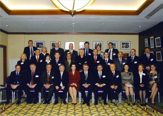 De traditionele 'familiefoto' bij dit soort bijeenkomsten. Ik sta middelste rij, in het midden (ai, zonder stropdas!) De dame voor mij is Nino Burjanadze, voorzitter van het parlement van Georgië, geflankeerd door haar collega's uit Polen (links: Bogdan Borusewich) en Litouwen (rechts: Viktoras Muntianas). Gelukkig