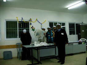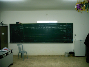 Van Nablus rijden we via dorpen als El Funduq en Kh Nabi Illyas naar Qalgilya, dat aan we grens met Israël ligt, hemelsbreed slechts 16 km van een onbereikbare Middellandse Zee verwijderd. In genoemde dorpen bezoeken we stembureaus, die zoals overal in basisscholen zijn gevestigd. In El Funduq, een dorp van een paar honderd inwoners, is het hoofd van de school een oude, erudiete man die uitstekend Frans en Engels spreekt. Of hij het 50 blz. tellende handboek heeft gelezen? Hij lacht, wijst naar zijn slapen en merkt op dat met logisch nadenken alles goed komt. Hij kent natuurlijk elke stemmer, die allen bij hem schrijven en rekenen hebben geleerd. In Kh Nabi Illyas is de school in een splinter nieuw gebouw gevestigd. Trots melden de stembureauleden, die meestal onderwijzer (M/V) zijn, dat de school geheel bekostigd is door een rijke Palestijn uit Saudi-Arabië, die het resultaat van zijn vrijgevigheid nog nooit heeft aanschouwd. Op het schoolplein hangen leuzen als Actions speak louder than words. Dat spreekt mij als Feyenoord-fan zeker aan, maar ik neem aan dat er iets anders mee wordt bedoeld, zeker als er vlak bij het beruchte, angstaanjagende Hamas-affiche hangt waarop een met explosieven behangen zelfmoordenaar prijkt.