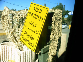 Checkpoint Graf Arafat Daarna is er een vrij verpletterende presentatie van een Amerikaans-Palestijnse advocaat -en lid van de Palestijnse onderhandelingsorganisatie. Hij toont in een helder betoog, dat veel weg heeft van een requisitoir, dat de Israëlische politiek van de nederzettingen in combinatie met het bouwen van hek dan wel muur alleen maar bedoeld is om zoveel mogelijk Palestijnen terug te dringen op een steeds kleiner wordend gebied. Nederzettingen worden gebouwd bij waterbronnen, op heuvels en in vruchtbare gebieden. Vervolgens wordt er een hek gebouwd zo dicht mogelijk tegen het naburige Palestijnse dorp aan, Israëlische militairen richten checkpoints in waardoor de Palestijnen iedere keer weer vernederd worden door in ‘eigen land’ zich te moeten legitimeren, gefouilleerd worden enz. en -hup- er is weer een stuk land geconfisqueerd. De Palestijnen kunnen hun land niet meer bewerken en raken werkloos. Vervolgens bouwen de Israëli’s op het gestolen land een of ander bedrijf, waar de Palestijnen tegen een schamele beloning kunnen werken. Trots vermelden de Israëlische media vervolgens dat Israël een bijdrage heeft geleverd aan de economische ontwikkeling van de Palestijnse gebieden. In elk gesprek wordt duidelijk dat de Palestijnen trots zijn op het democratische proces waar ze midden in zitten, maar dat het tegelijkertijd plaatsvindt in door Israël gecontroleerd -en dus bezet- gebied. In de late middag bezoeken we in het donker het graf van Yasser Arafat dat op het parkeerterrein van de deels door Israël kapot geschoten compound van de Palestijnse Autoriteit ligt. Zoals alles hier gaat het er weinig formeel aan toe. Zaterdag