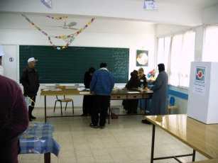 De beide oppositionele parlementsleden gaan uiteraard uitgebreid in op het conflict. Hun oppositie wordt niet zozeer gevoed door kritiek op de manier waarop de Palestijnse leiders met Israël om gaan, maar door de ‘binnenlandse’ politiek, zoals de grootschalige fraude binnen het fragiele Palestijnse overheidsapparaat. Eén van hen heeft zijn kritische opstelling gestraft gezien door allerlei intimidaties van Fatah-militanten, zoals gevangenneming en schoten op zijn huis. Terug in Jeruzalem staat een toeristisch uitje op het programma: bezoek aan de Tempelberg en de moskee, onder begeleiding van een Palestijnse archeoloog. Ik ga mee, want deuren en poorten van de moskeeën die eerder deze week voor een ongelovige als ik gesloten bleven, zwaaien nu open. De Qubat al-Sakhra moskee is van binnen even indrukwekkend als van buiten. Een grote, maar toch intieme ruimte, waarin in bij pilaren, in nissen en onder ramen moslims bidden of de koran lezen. Kinderen huppelen heen en weer en ook enkele duiven vinden blijkbaar iets van hun gading. We dalen af naar de kelder waar de rots zichtbaar is waar joden, moslims en christenen ieder zo hun eigen verhaal bij hebben. De lunch is om 4 uur. Uitgehongerd storten we ons op de vele schalen met uiteenlopende gerechten in een Grieks restaurant, vlak bij de kerk waar Jezus ligt begraven. Zondag 9 januari 2005 Om deze dag is het allemaal te doen: de verkiezingen. Om kwart over vijf vertrekt ons team uit Oost-Jeruzalem op weg naar Nablus. Dat bestaat uit vijf mensen: twee parlementariërs die observeren (de Italiaanse Tana de Zulueta, lid van de senaat voor de Democratici di sinistra en ik) een medewerkster van het secretariaat van de Raad van Europa, een tolk en de chauffeur. We zijn op tijd in Nablus na een rustige rit door een aanvankelijk donkere Westbank. Onze tolk blijkt ook reisgids te zijn die enthousiast vertelt over ieder dorp en berg die we passeren, daarbij puttend uit bijbel en koran. We passeren enkele checkpoints, zoals we er vandaag nog vele zullen passeren, bemenst door teenagersoldaten, die de opdracht hebben gekregen hun gebruikelijke arrogantie -in veel gevallen een camouflage van angst en grote onzekerheid- in te ruilen voor een vriendelijk niet-moeilijk-doen. Daarbij doet de roze VIP-kaart die elke waarnemer van het Israëlische ministerie van Buitenlandse Zaken heeft ontvangen dienst als uitstekend glijmiddel. Nablus is een forse universiteitsstad, waar vele radicale Palestijnse groepen huizen. En veel stembureaus. We pikken er een uit en maken de openingshandelingen mee. Het kiezersregister wordt klaargelegd, de stembiljetten en de inkt. Want iedere stemmer krijgt een likje inkt op de rechter duim om te voorkomen dat er twee keer wordt gestemd. Dat kan omdat er -zeer gecompliceerd- vlak voor de verkiezingen is besloten om in aparte stembureaus het mogelijk te maken dat mensen die zich niet als kiezer hebben laten registreren, toch te laten stemmen aan de hand van een -weliswaar acht jaar oud- bevolkingsregister. Dit was nodig omdat niet iedere Palestijn in staat was zich tijdig als kiezer te registreren door de grove inperking van hun bewegingsvrijheid die de Israëli’s zich menen te kunnen veroorloven. De twee stembureaus die we in Nablus bezoeken hebben alles in orde. Het is vroeg. De kiezers druppelen binnen, veelal mannen op weg naar hun werk. Als we een bureau verlaten rijdt er net een propagandawagen van Abbas, de gedoodverfde winnaar, weg, gevolgd door cameramensen. Dat zullen we nog vaak tegenkomen: de richtlijn dat rond het stembureau geen verkiezingspropaganda mag worden gemaakt, blijkt een dode letter.