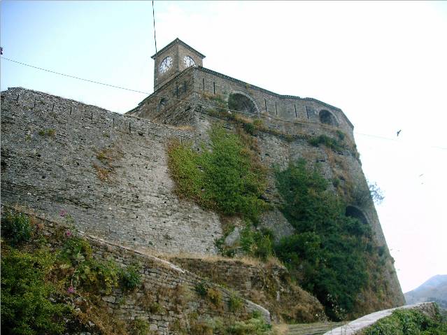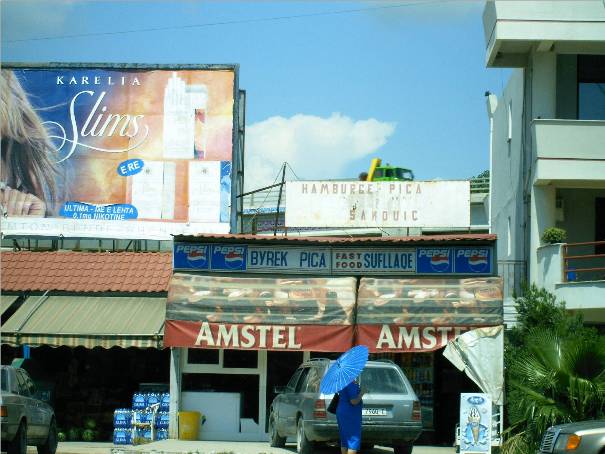 bekritiseren. Om half twee vertrek ik met een taxi samen met mijn Zwitserse collega Johannes Randegger naar Gjirokastėr, een rit van 250 km naar het ruige, diepe zuiden van Albaniė. We komen langs Durrės, de Costa Brava van Albaniė. Vele kilometers lang een aaneenrijging van hotels, restaurants en bars langs het strand van de Adriatische Zee, zij het dat de helft eeuwig in aanbouw lijkt, zodat het een toch wat desolate aanblik biedt.