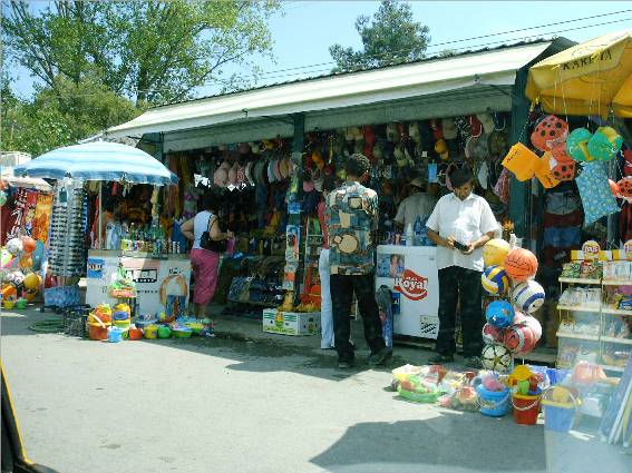 een dorp en vele, vaak armoedige wegrestaurantjes. Kramen met fruit langs de weg,